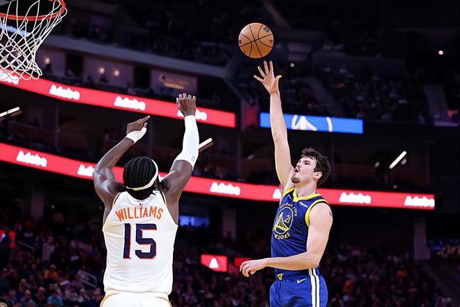 本场比赛中,勇士的先发中锋昆滕-波斯特(Quinten Post)的表现倒是有了显著的回暖。波斯特全场出场27分10秒,投篮7中5,三分线外6中4,得到了14分6篮板3助攻1抢断2盖帽的数据,还有1次失误和2次犯规,正负值为+16。波斯特在进攻端大杀四方,展现出了自己超强的投射能力,也是给对方制造了不小的威胁。不仅如此,他也是展现出了一定的传球能力和策应能力,他在进攻端的功能非常全面。除此之外,他在防守端的表现同样是可圈可点的,他在内线防守方面的表现也是超出大家预期的,他在本场比赛中竟然展现出了不错的内线防守能力。至少在本场比赛中,波斯特在攻防两端都起到了决定性的作用,他在场上时球队的局面也是一片大好,他也为球队的胜利做出了巨大的贡献,而且本场比赛也是波斯特本赛季至今表现最好的一场比赛。